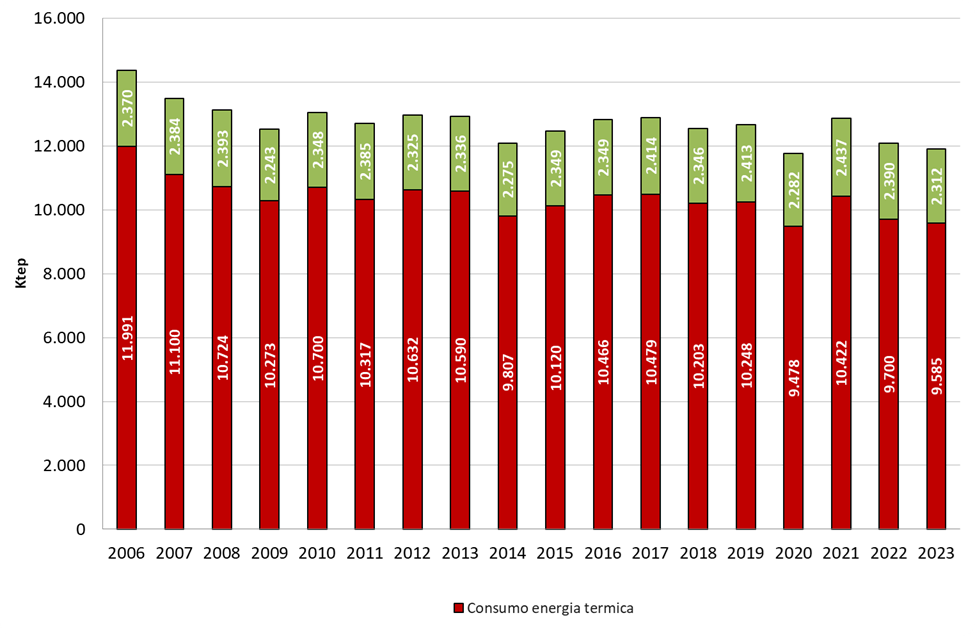 Trend consumo finale lordo energia termica vs elettrica
