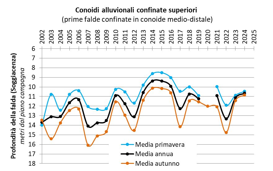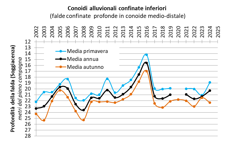Evoluzione temporale delle falde nei corpi idrici di conoide alluvionale con acquiferi confinati inferiori (2002-2024)