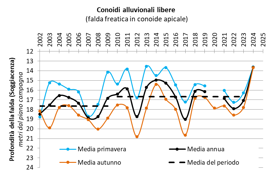 Evoluzione temporale delle falde nei corpi idrici di conoide alluvionale con acquiferi liberi (2002-2023)