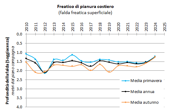 Evoluzione temporale delle falde nel corpo idrico freatico di pianura costiero (2010-2024)
