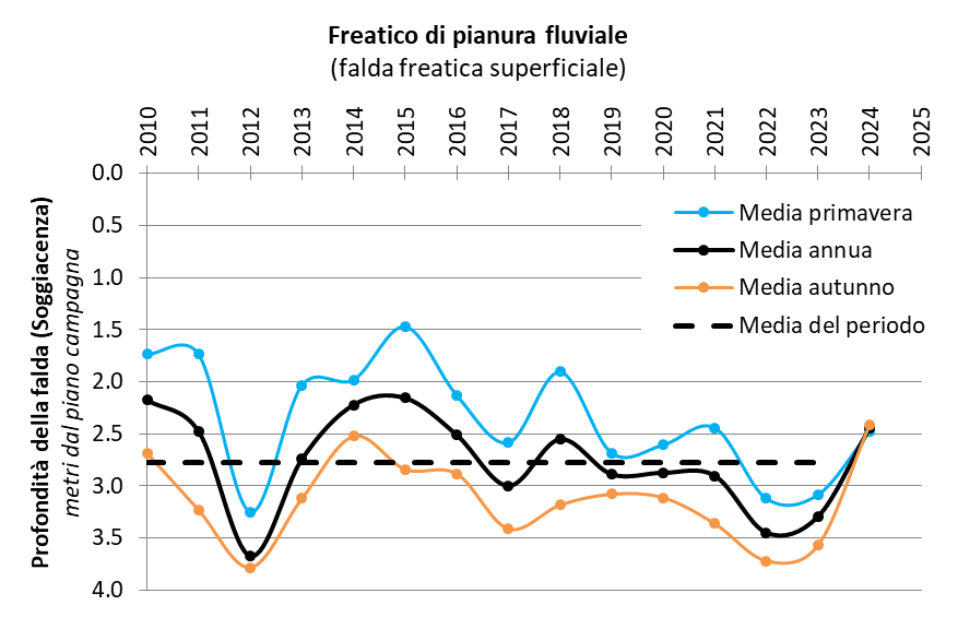 Evoluzione temporale delle falde nel corpo idrico freatico di pianura fluviale (2010-2024)