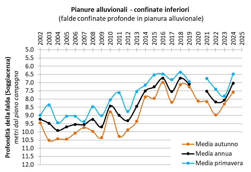 Evoluzione temporale delle falde nei corpi idrici di pianura alluvionale con acquiferi confinati inferiori (2002-2024)