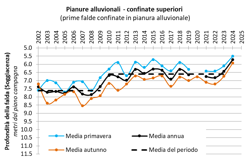 Evoluzione temporale delle falde nei corpi idrici di pianura alluvionale con acquiferi confinati superiori (2002-2024)