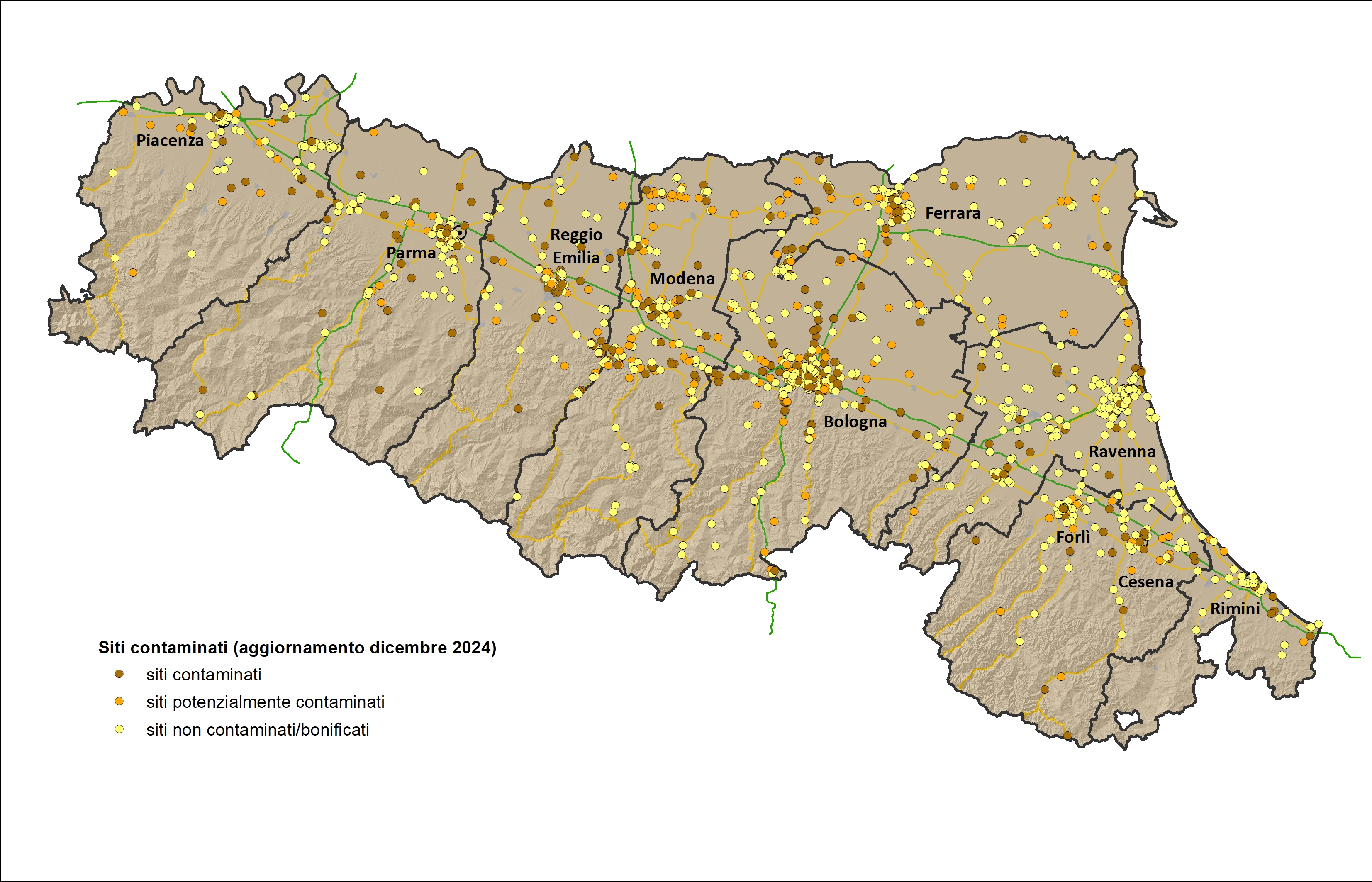 Numero di siti contaminati, con procedimento in corso o concluso, presenti nell'Anagrafe regionale, suddivisi per provincia, al 31 dicembre 2024
