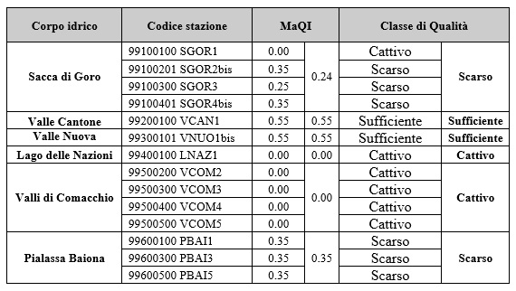 Stato di qualità dei corpi idrici per le macroalghe