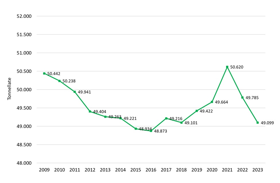 Quantitativi di azoto (tonnellate) derivanti dagli effluenti degli allevamenti suini dell'Emilia-Romagna (2007-2023)