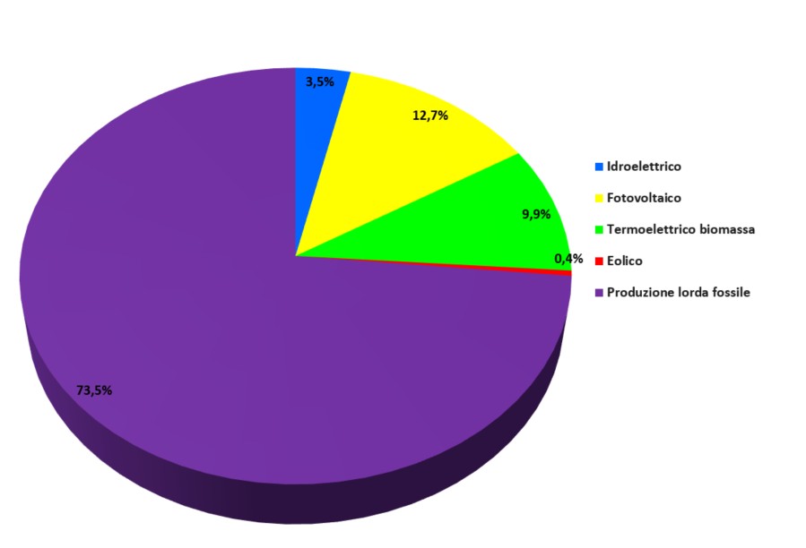 Ripartizione percentuale produzione energia elettrica, per fonte