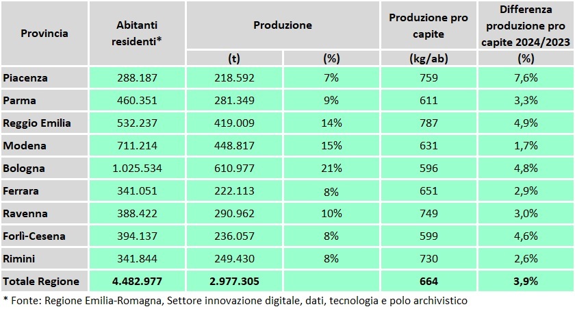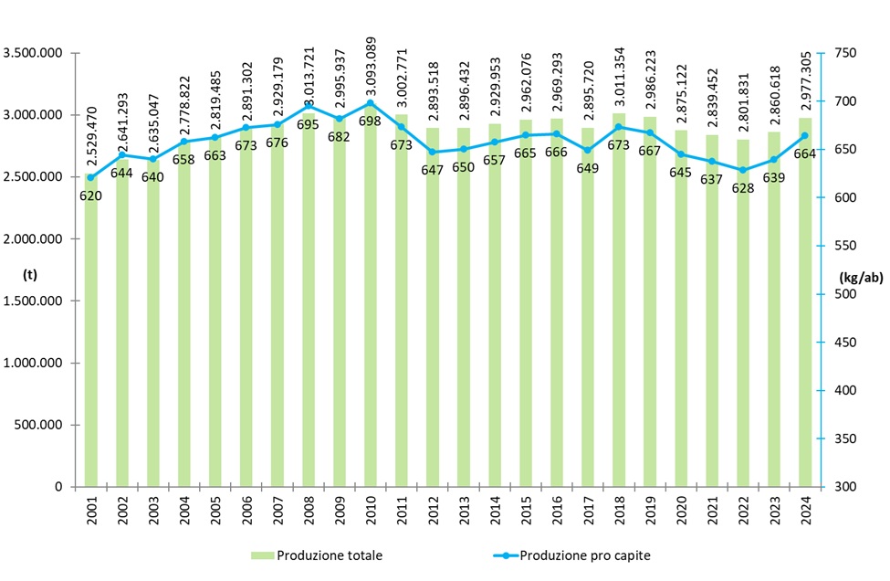 Tabella produzione rifiuti urbani