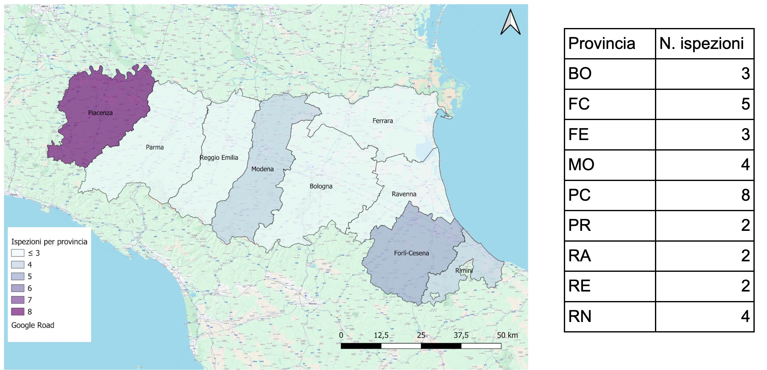 Si evidenzia che il maggior numero di ispezioni viene effettuato nei territori provinciali in cui, oltre ad essere più presenti le tipologie richieste, sono presenti in numero minore installazioni AIA ricadenti nella Categoria IPPC 5, anche per garantire un’equa ripartizione delle attività ispettive svolte dal personale dell’Agenzia.