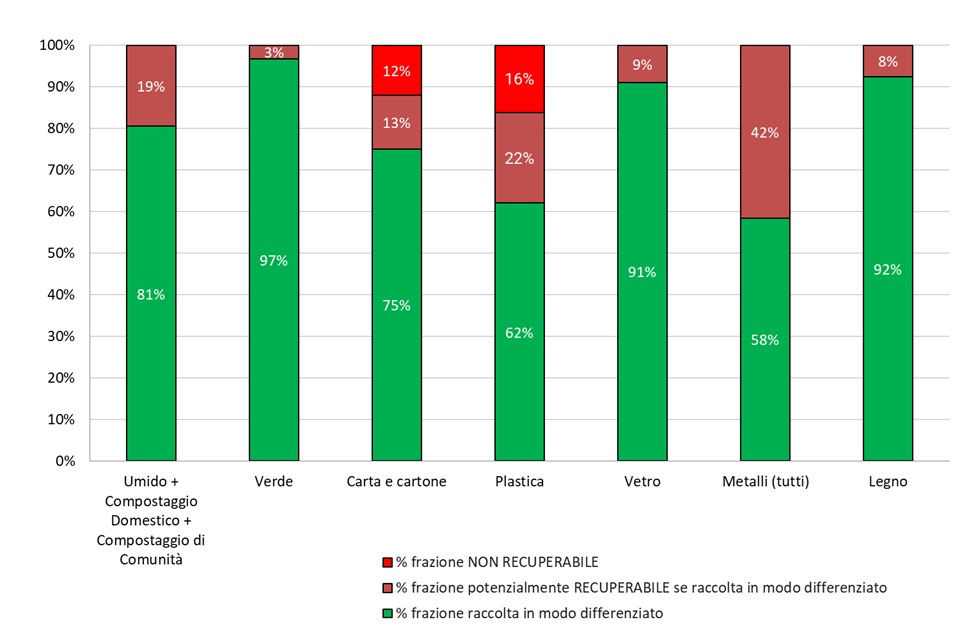 Principali frazioni, teoricamente recuperabili, presenti nel rifiuto indifferenziato (2020)
