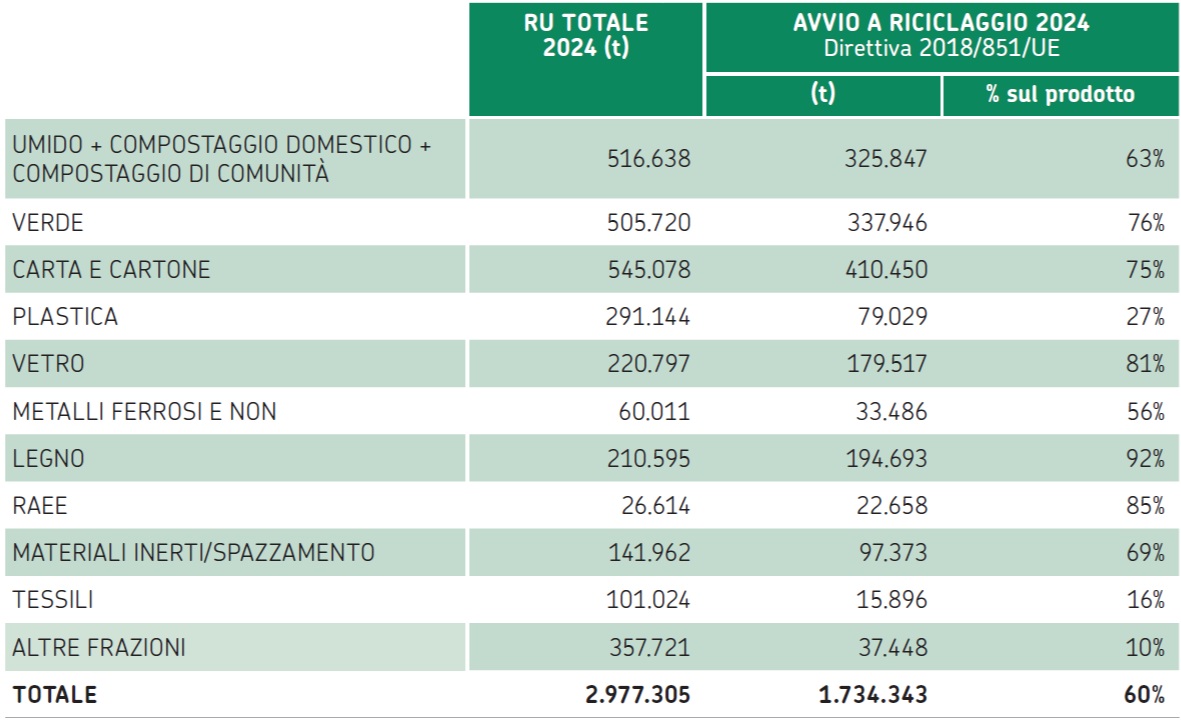 Principali frazioni, teoricamente recuperabili, presenti nel rifiuto indifferenziato (2024)