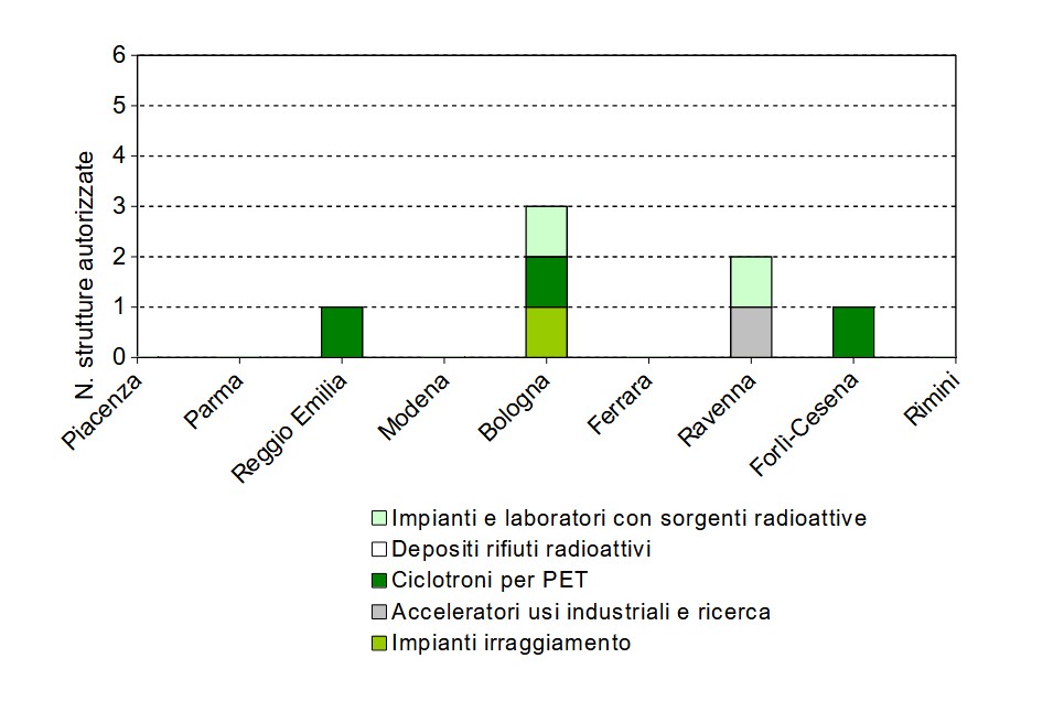 L’indicatore documenta il numero e la distribuzione sul territorio regionale di strutture, suddivise per tipologia d’impianto, autorizzate all’utilizzo di sorgenti di radiazioni (materie radioattive e macchine radiogene), limitatamente all’impiego di categoria A (per la cui definizione si rimanda al DLgs 101/2020). La categoria A riguarda le pratiche che utilizzano sorgenti di energia o attività, più elevate ed a queste pratiche è associato un rischio maggiore.