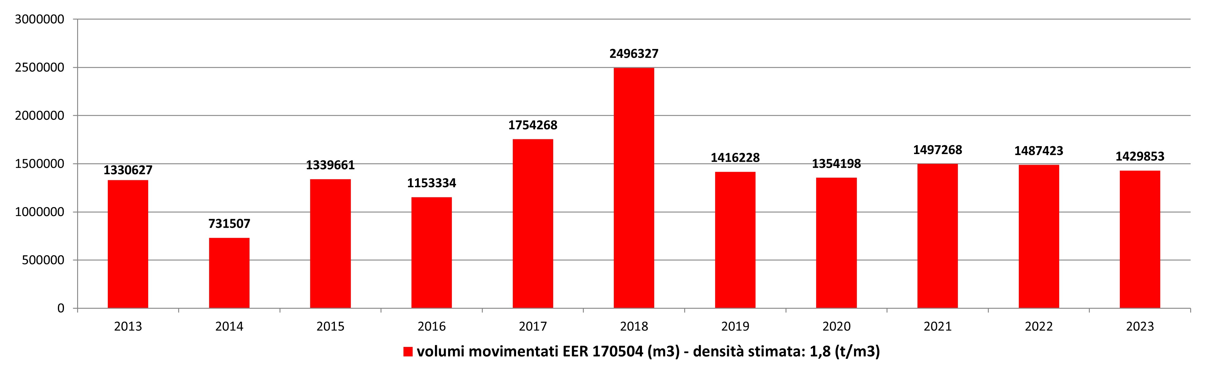 Volumi di materiale da scavo gestiti come rifiuti (EER 170504), dati 2013-2023