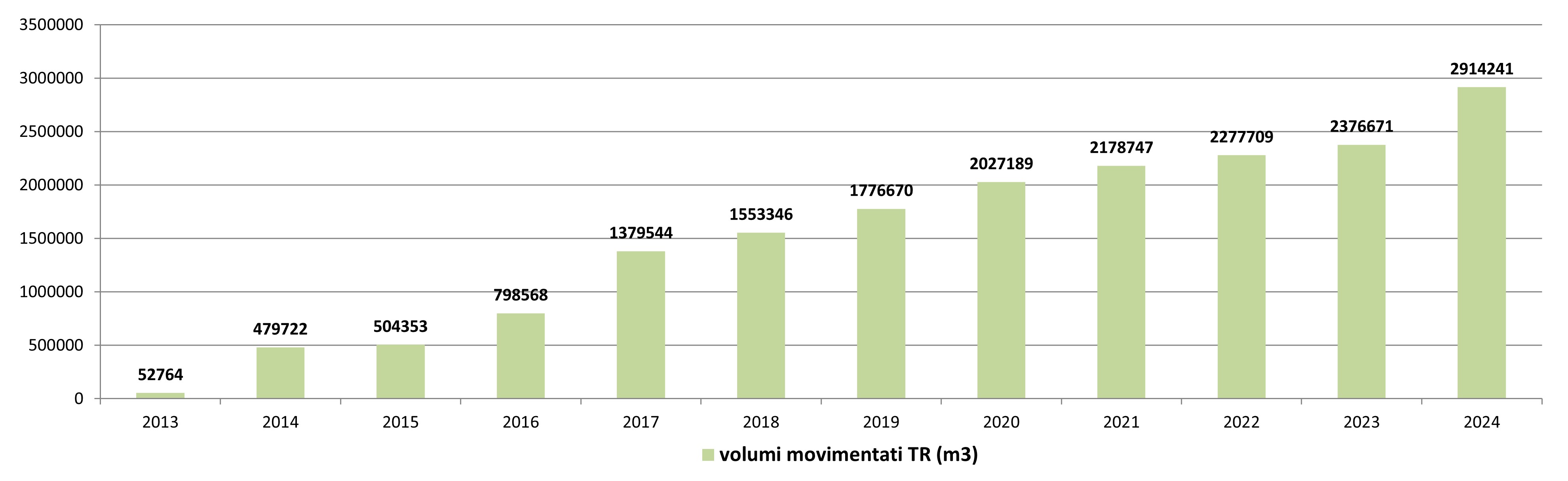 Volumi di materiale da scavo gestiti come sottoprodotti (DPR 120/2017), dati 2013-2024