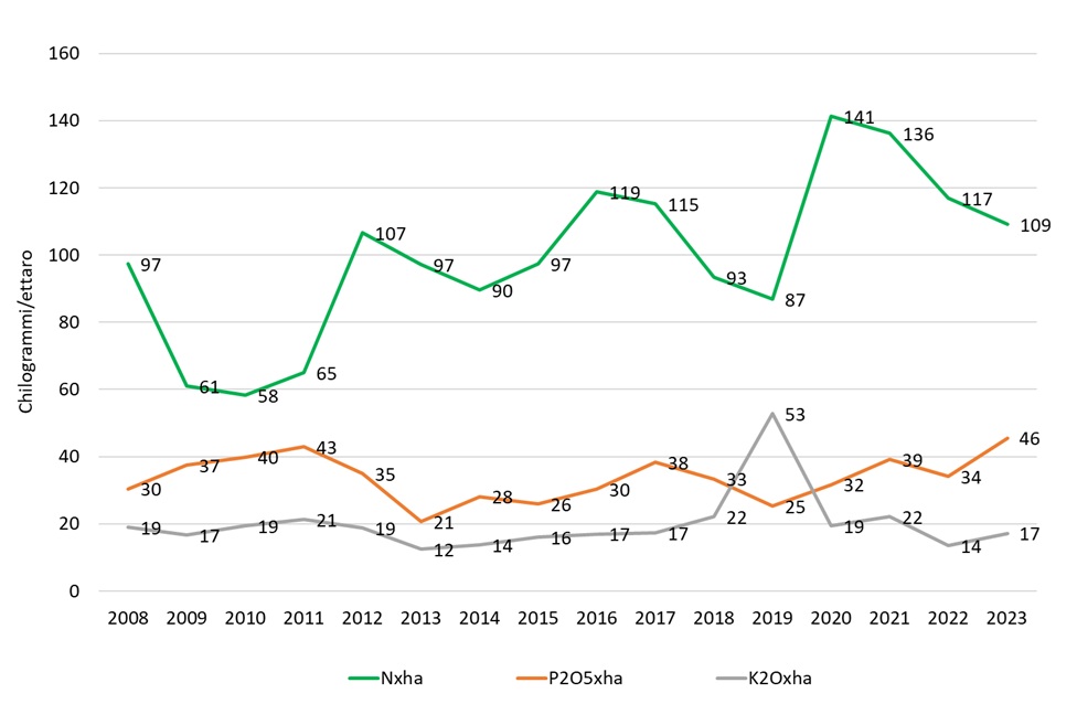 Trend vendita fertilizzanti per ettaro di SAU